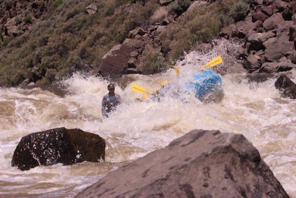 This 17-mile trip starts just northwest of Taos. We started the day with a float through relatively calm water for a few miles as we enter into the canyon. Downstream are the demanding class III-IV rapids, including Ski Jump, Dead Car, and Powerline Falls. As the gorge narrows the whitewater will increase. We will still have the time to look around at the beauty of northern New Mexico. With the wildlife along the shores keep an eye out for some bighorn Sheep, eagles, and more.